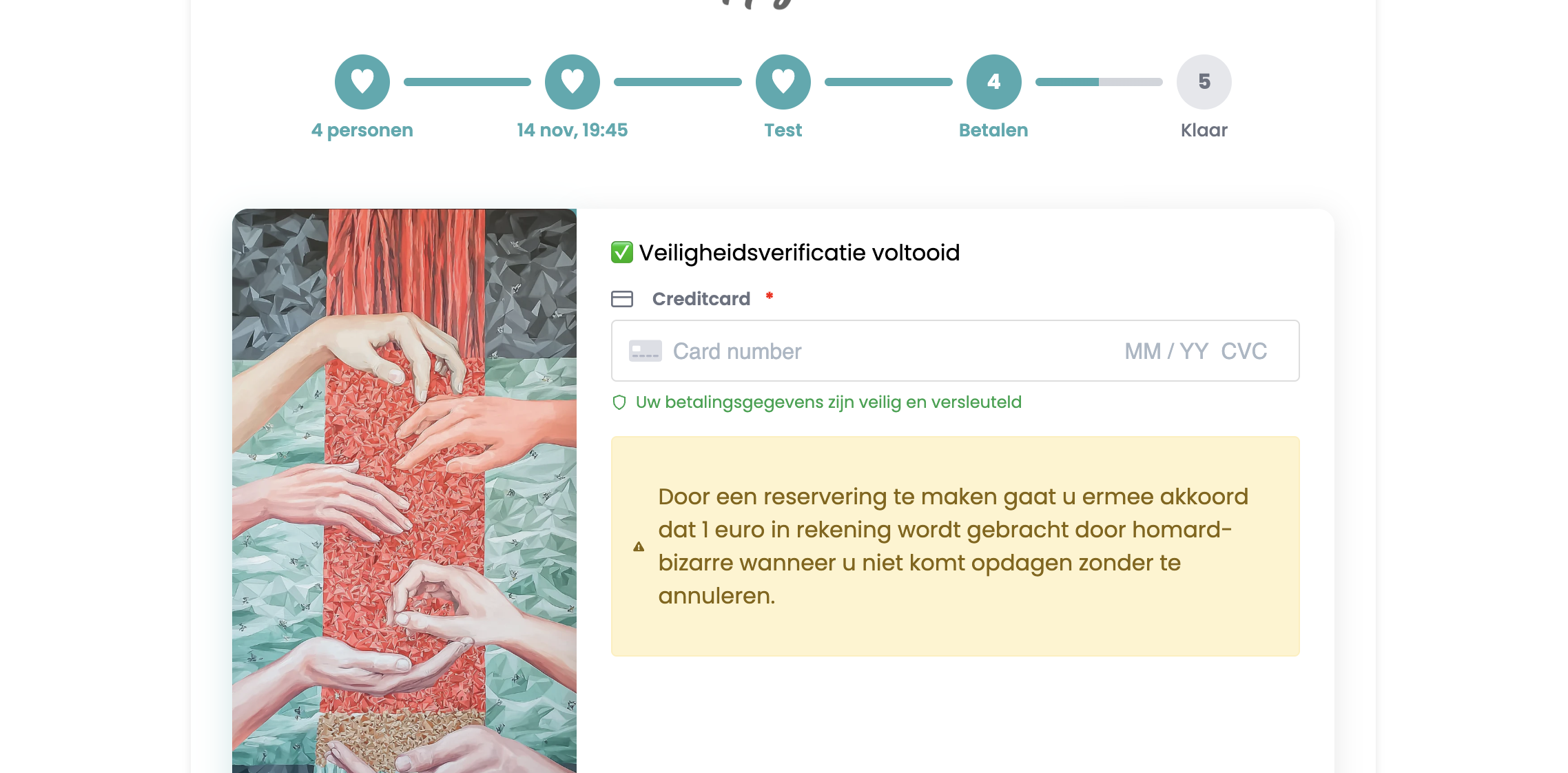 2. We vragen naar de credit card gegevens van de klant