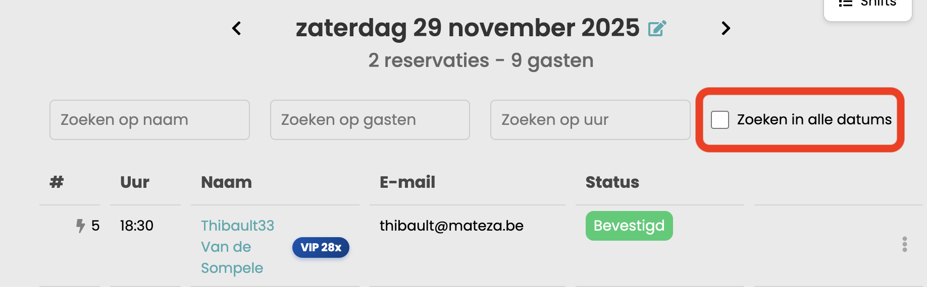 Vanaf nu kan je ook gemakkelijk reservaties zoeken op naam als je de datum niet weet.